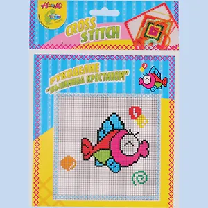 Описание: Такая вышивка необычно полезна для моторики ребенка, развивает воображение и пространственное мышление. Набор : вышивка крестиком ( в наборе сетка пластиковая 14*14 см. нитки мулине, пластиковая игла) в блистере.