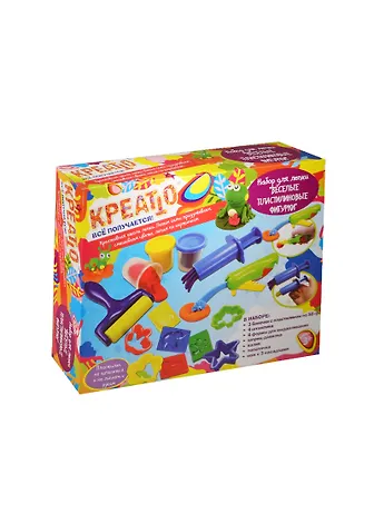 Описание: Окунитесь в мир творчества с набором для лепки «Веселые фигурки» ТМ «Креатто»! Валиком раскатываем блинчики разных цветов, укладываем их слоями и вырезаем фигурки с помощью формочек. Объемными штампиками создаем забавных зверушек. Лепим овощи и фрукты, цветное печенье, вырезаем фигурки и печатаем картинки. Смешиваем цвета, экспериментируем с формами, фантазируем и тренируем мелкую моторику. В наборе: застывающий пластилин 3х50 г, шприц-давилка, 4 формочки для вырезания, 2 формочки для выдавливания, скалка, стека., складной пластмассовый нож, имеющий 3 опции: нож для вырезания, нож-пила для разрезания, нож-валик, создающий шикарные полоски зубчиками. Материал безопасен, обладает отл