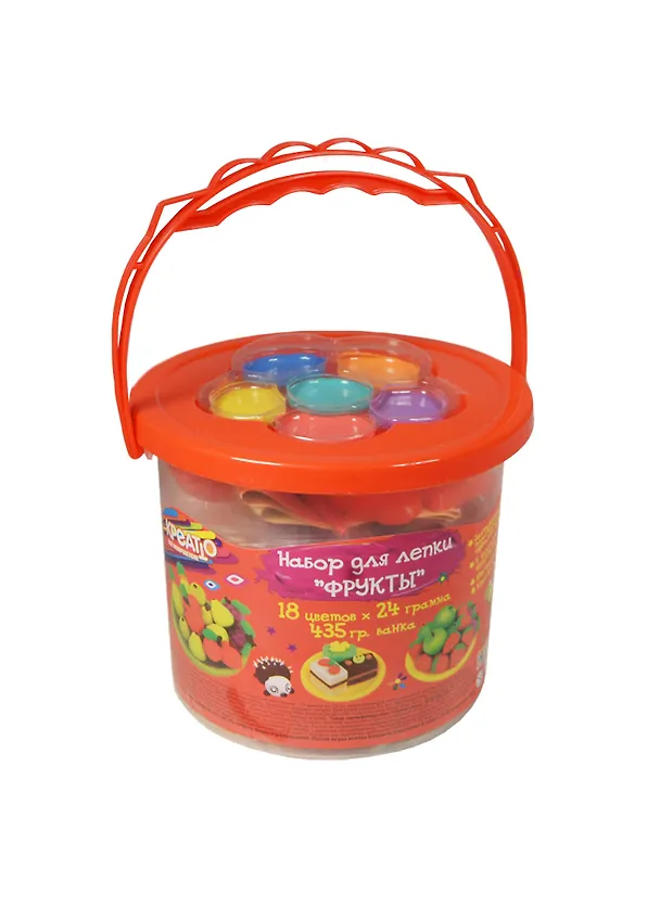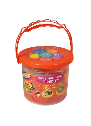 Набор д/лепки Фрукты (28643) (18цв.х24гр.) (5 формочек+краски+кисть) (Креатто) (банка/435гр.) (3+)