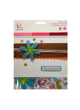 Набор д/создания открыток Голубой цветок (AF07-042-02) (106367) (5 открыток+5 конвертов) (упаковка)