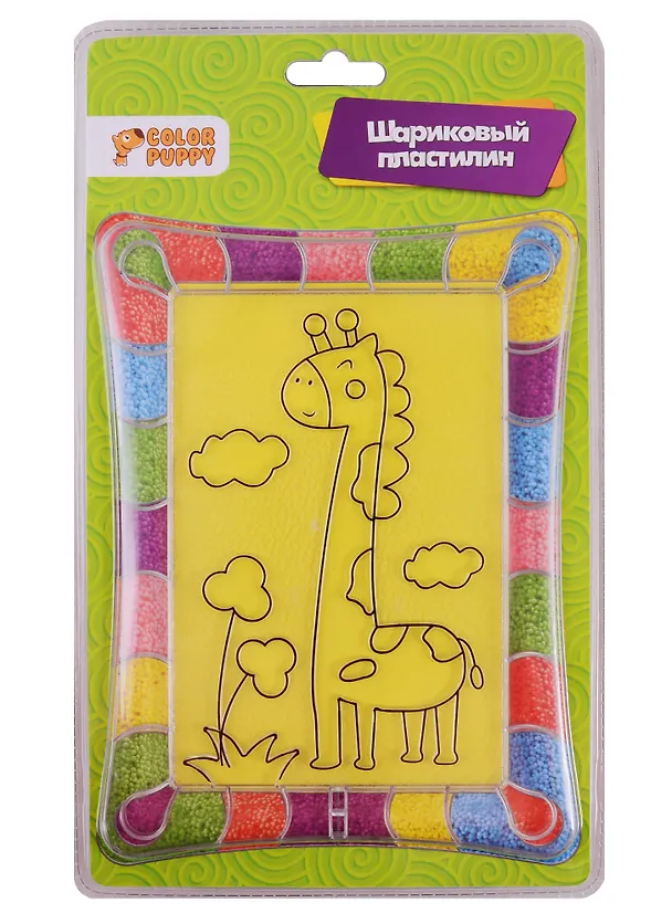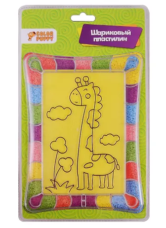 Набор для творчества «Жирафик» от ТМ Color Puppy включает в себя пластиковую картину с нанесённым контурным рисунком и шариковый пластилин 6-ти разных цветов для её украшения. «Раскрасить» изображение с милым персонажем можно, используя собственную фантазию, или воспользовавшись подсказкой на обратной стороне упаковки.