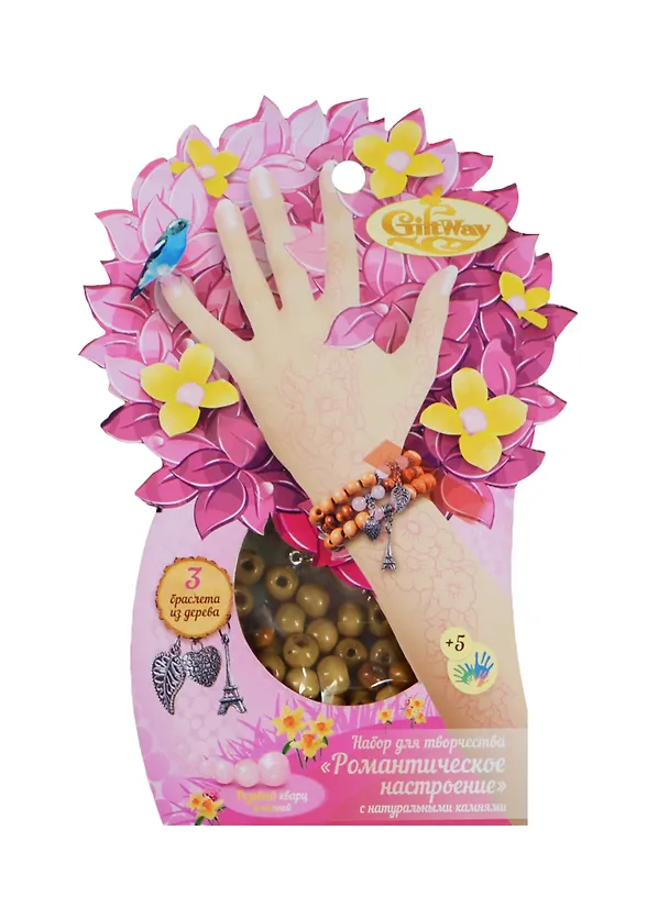 Набор д/творч. Этника Романтич. настроение (00012468) (3шт.) (бусины дерево) (нат. роз. кварц) (5+) (упаковка)