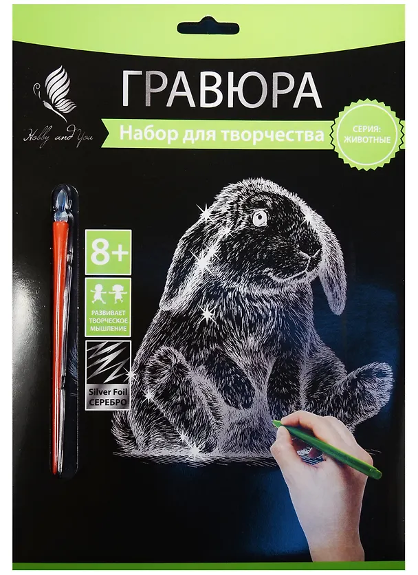 Гравировка - древнее, очень сложное искусство. Наборы «Hobby and you» предлагают познакомиться с гравюрой и выполнить самый интересный этап. С помощью набора «Hobby and you» Ваш ребенок сможет самостоятельно создать настоящее произведение искусства. Техника уникальна, но очень проста: в наборе вы найдете основу с нанесенным контуром и специальный штихель. Благодаря такой технике ребенок сможет создавать сюжеты, достойные великих мастеров, развивая свое художественное мышление. Великолепная гравюра станет прекрасным украшением интерьера и замечательным подарком на любой праздник.