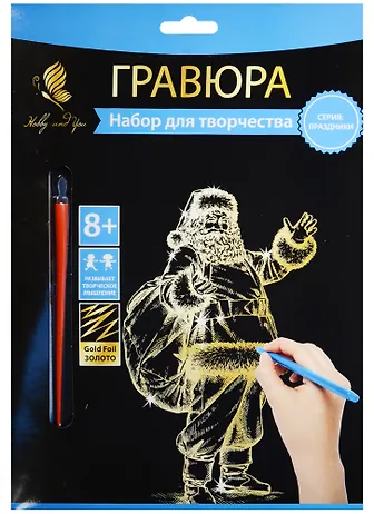 Гравировка - древнее, очень сложное искусство. Наборы «Hobby and you» предлагают познакомиться с гравюрой и выполнить самый интересный этап. С помощью набора «Hobby and you» Ваш ребенок сможет самостоятельно создать настоящее произведение искусства. Техника уникальна, но очень проста: в наборе вы найдете основу с нанесенным контуром и специальный штихель. Благодаря такой технике ребенок сможет создавать сюжеты, достойные великих мастеров, развивая свое художественное мышление. Великолепная гравюра станет прекрасным украшением интерьера и замечательным подарком на любой праздник.
