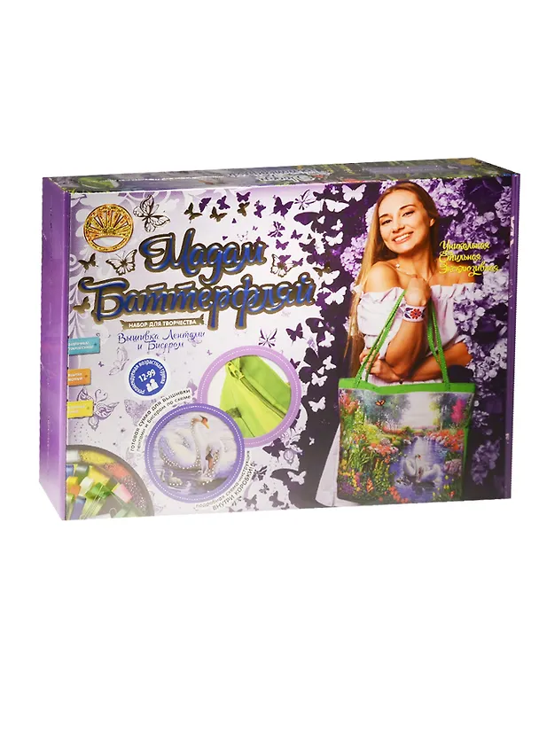 Набор для творчества "Лебеди" из серии "Мадам Баттерфляй" от бренда "Лапландия" - это отличный набор для рукоделия. С помощью него девочка сможет научиться вышивке, причем с применением ленты и бисера. Такая вышивка станет настоящим украшением для любого изделия, будь то сумка, платье или что-то другое.