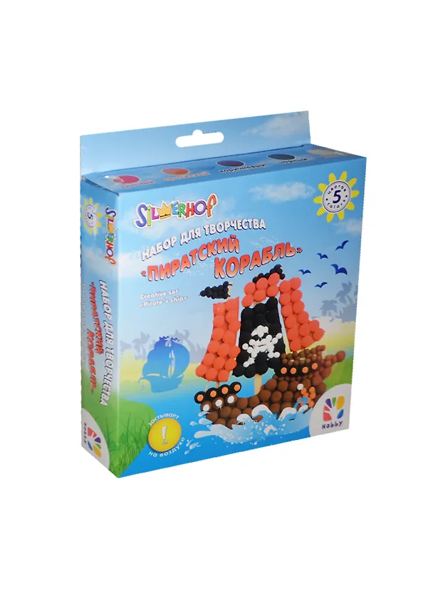 Набор д/творч. с массой д/лепки Пиратский корабль (956131) (3 баночки/5цв.+картина с подставкой+клей с блестками+стек+трубочка) (Hobby) (5+) (коробка)