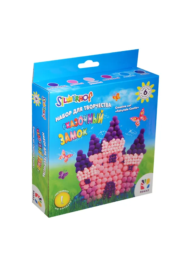 Набор д/творч. с массой д/лепки Сказочный замок (956132) (3 баночки/6цв.+картина с подставкой+клей с блестками+стек+трубочка) (Hobby) (5+) (коробка)
