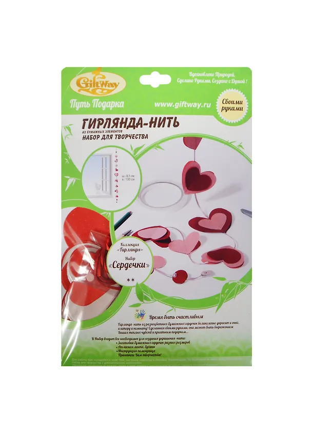 Набор д/творч. Сердечки Гирлянда-нить из бум. эл. (00011663) (ш 8,5см /в 100см) (кол. Гирлянды) (упаковка)