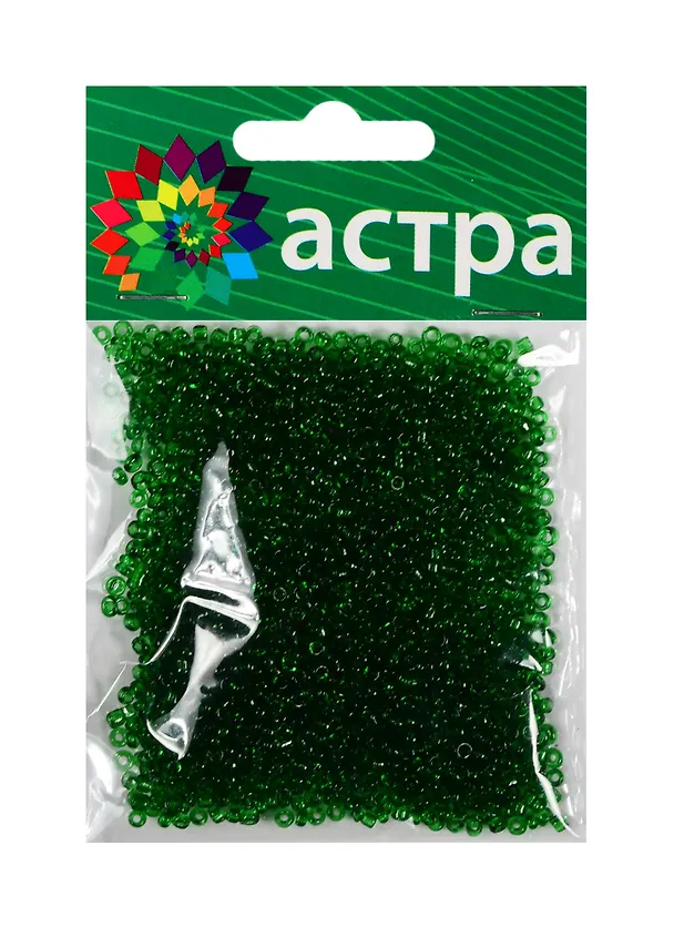 Набор д/творчества АСТРА Бисер 11/0 20гр 7B зеленый/прозрачный