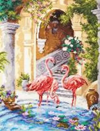 Набор д/творчества ЧУДЕСНАЯ ИГЛА 64-02 Набор для вышивания "Розовый фламинго" 30*39см.