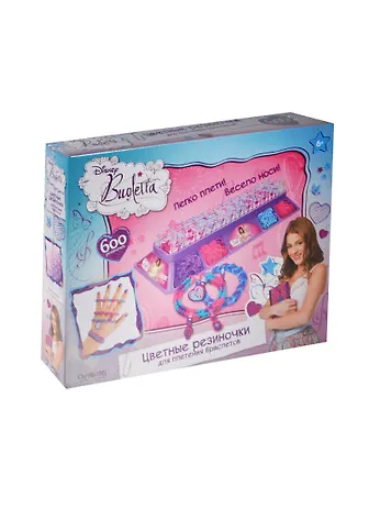 Набор д/творчества Crazy Loom Виолетта Цветные резиночки 600 рез (неон), станок с подст. д/хранения, крючок, подвески, зам-ки 01162