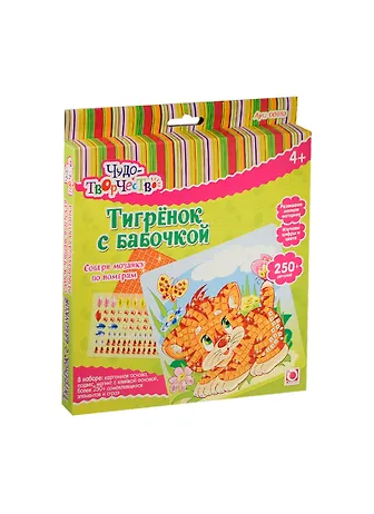 Набор д/творчества мозаика по номерам "Тигренок с бабочкой" 250+ детал. 00610