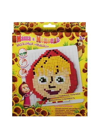Создай необычный портрет Маши с помощью мозаики! В комплекте: - основа - сеточка для мозаики - инструмент для сборки - элементы мозаики в пластинах (6 наборов) - схема сборки. Развиваем пальчики, тренируем усидчивость! Немного терпения ивнимательности, и у тебя готова настоящая мозаичная картина с портретом Медведя! Ты можешь использовать ее для украшения комнаты или подарить близкому человеку. Работа с мозаикой развивает мелкую моторику, усидчивость, внимательность и координацию движений. В набор входит: основа-сеточка для мозаики, инструмент для сборки, элементы мозаики в пластинках(6 наборов), схема сборки.