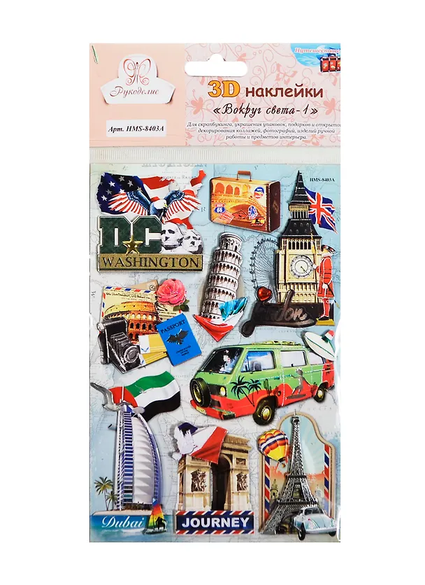 Набор д/творчества Наклейки 3D Вокруг света-1 HMS-8403A