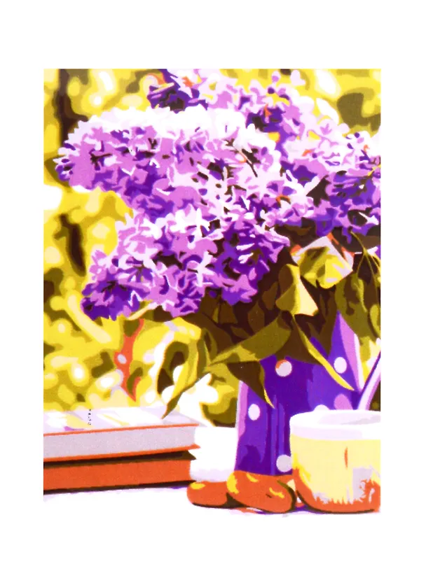 Набор д/творчества Рыжий кот Холст с красками 22х30см по номерам Букет сирени и книги HS411