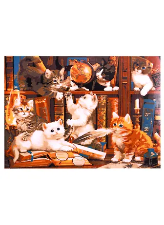 Набор д/творчества Рыжий кот Раскраска на картоне А3 (в коробке) (16цв.) Котята на книжной полке Р-3047