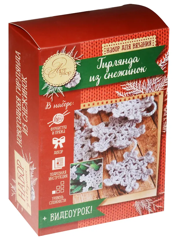 Набор д/вяз. Новогоднее укр. на елку Гирлянда из снежинок (дек.снежинки) (10,7х16,3х5,6 см) (1447884) (+видеоурок по ссылке) (АртУзор) (Своими руками)