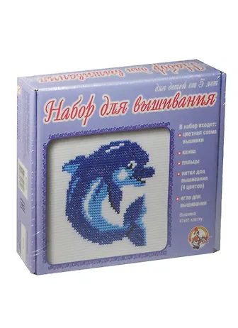 Набор д/вышивания Дельфин (00314) (41х41 клетки) (цв. схема+канва+пяльцы+нитки/4цв.+игла) (5+) (коробка)