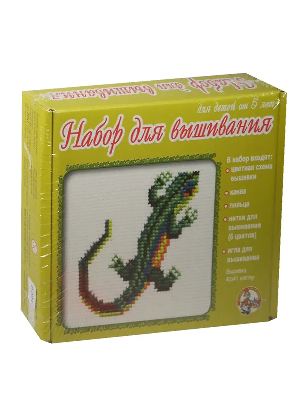 Набор д/вышивания Ящерица (01017) (40х41 клетки) (цв. схема+канва+пяльцы+нитки/6цв.+игла) (5+) (коробка)