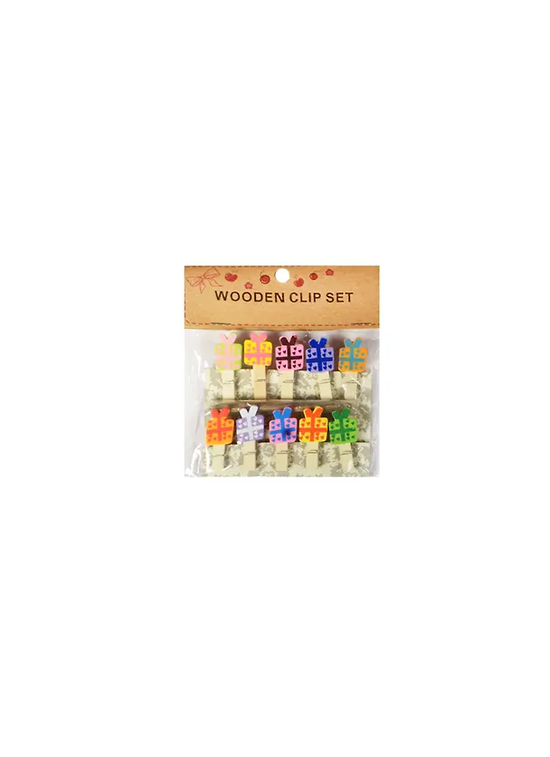 Набор декор. дерев. прищепок Подарочные коробки (11061800) (10 шт.) (микс цветов) (коробка)