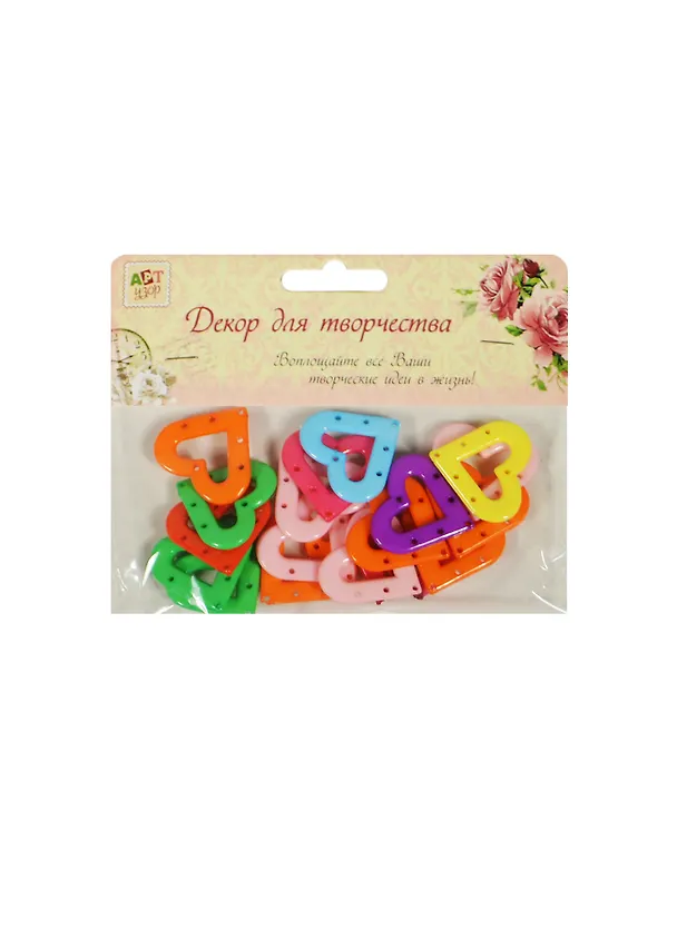 Набор декор для творч. пластик Сердечки МИКС (1052909) (d=2,6см) (18шт) (упаковка)