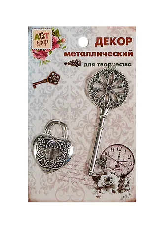Набор Декор металл Ключ и замок (807408) (2шт) (Арт Узор) (упаковка)