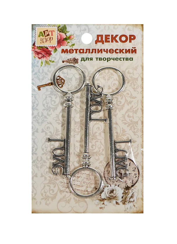 Набор Декор металл Ключ от сердца (807422) (3шт) (Арт Узор) (упаковка)