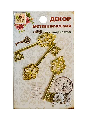 Набор Декор металл Ключик резной золотистый (806091) (3шт) (7,8см) (Арт Узор) (упаковка)