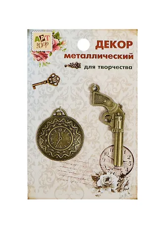 Набор Декор металл Пистолет Часы МИКС (806094) (2шт) (6см) (Арт Узор) (упаковка)