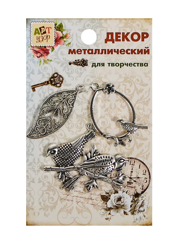 Набор Декор металл Птички и листик (807413) (3шт) (Арт Узор) (упаковка)