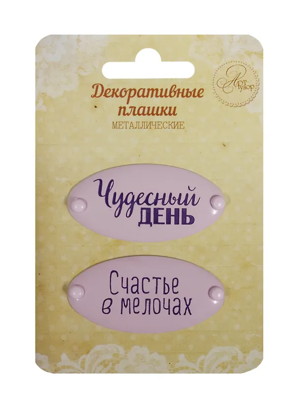 Набор декор. плашек на брадсах Чудесный день/Счастье в мелочах (1231136) (2шт.) (металл) (Арт Узор) (3+) (упаковка)