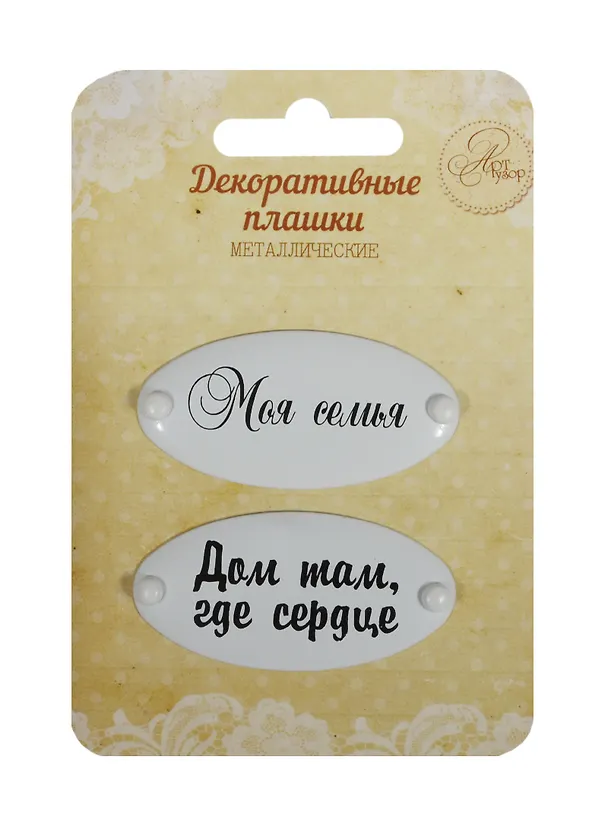 Набор декор. плашек на брадсах Моя семья/Дом там где сердце (1231131) (2шт.) (металл) (Арт Узор) (3+) (упаковка)