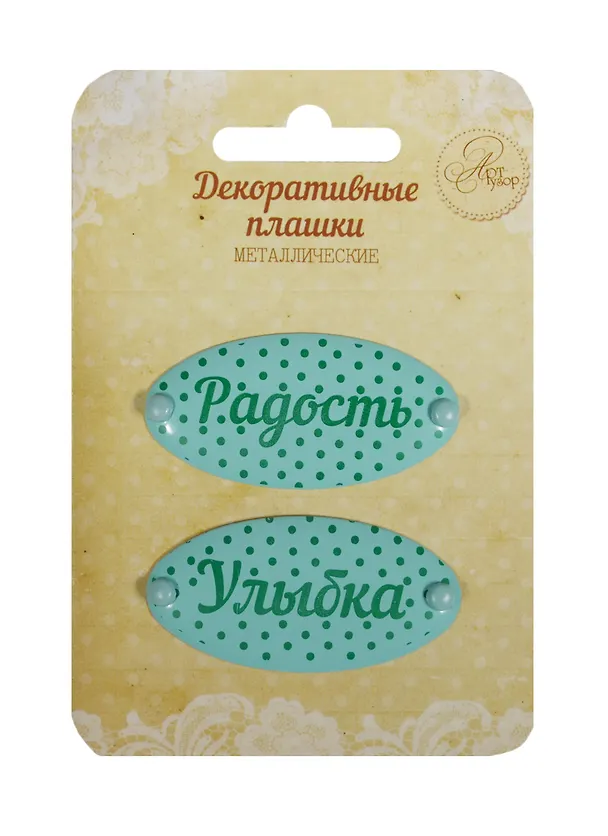 Набор декор. плашек на брадсах Радость/Улыбка (1231135) (2шт.) (металл) (Арт Узор) (3+) (упаковка)