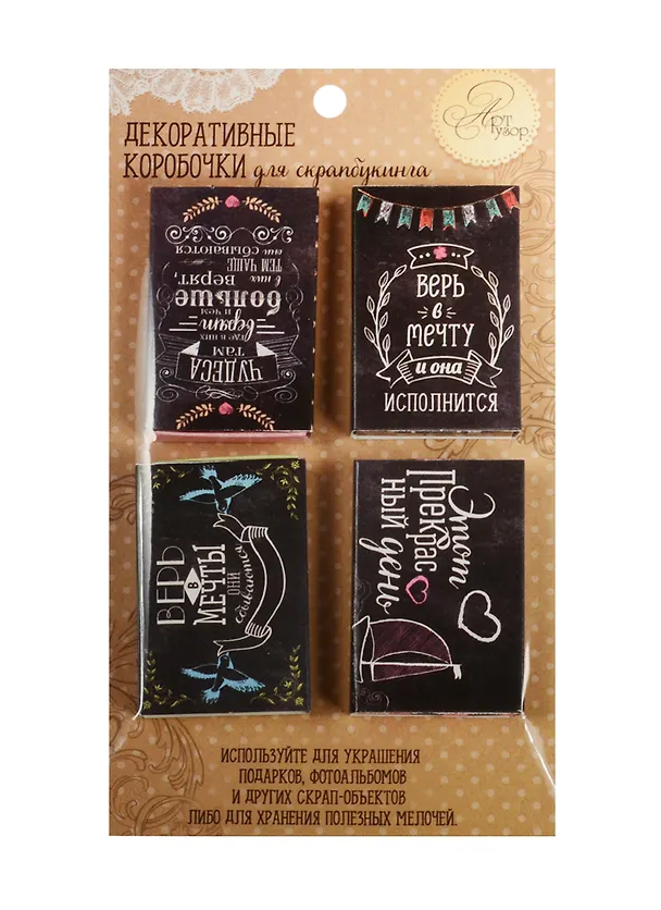Набор декоративных коробочек Мечты сбываются (1282614) (4шт.) (10,5х18см) (Арт Узор) (упаковка)