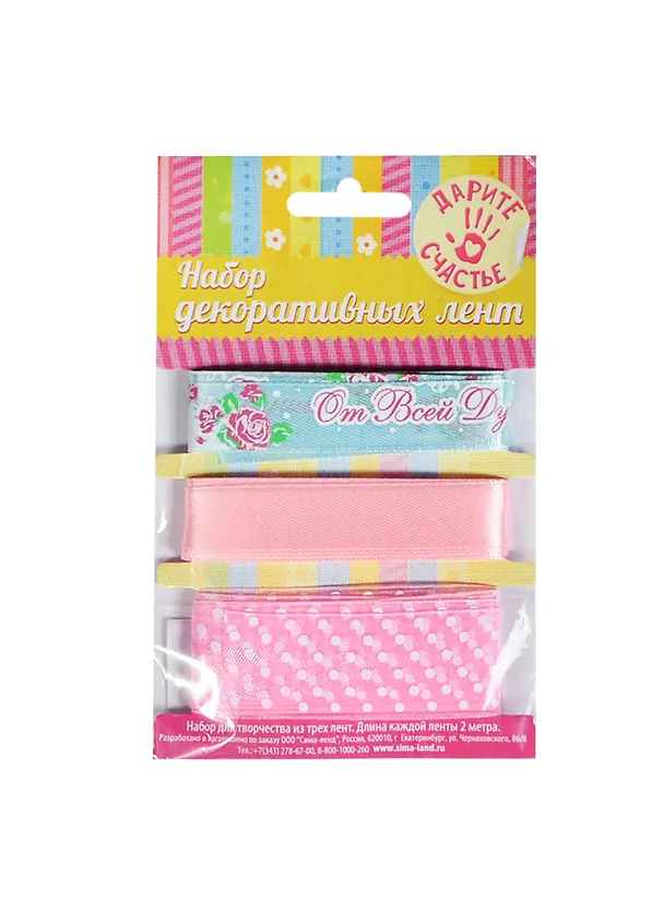 Набор декоративных лент для творчества. В набор входит три вида лент, длина каждой ленты 2 метра.