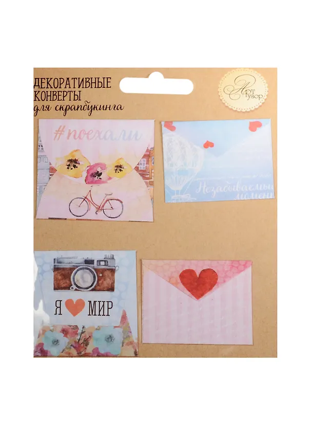 Набор декоративных мини-конвертиков Люблю путешествовать (1233195) (11х13,5см) (Арт Узор) (упаковка)