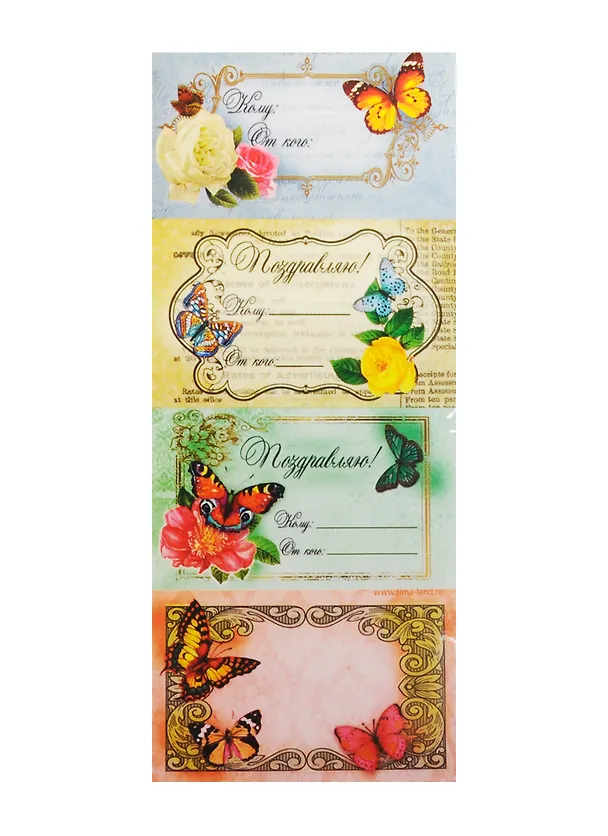 Набор декоративных наклеек на подарок Бабочки (1023827) (4шт.) (упаковка)