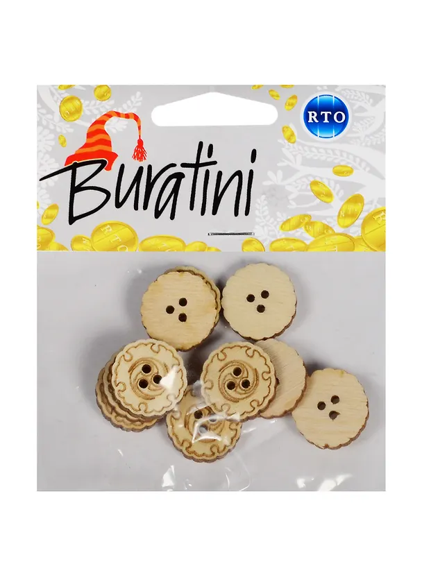 Набор декоративных пуговиц РТО (DZ40001) (Buratini) (фанера) (упаковка)