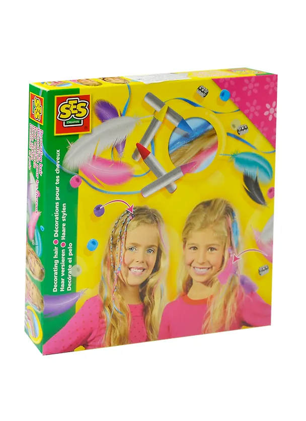Набор Декорируй волосы (14978) (инструкция+цв. маркеры+лента+перья+бусины) (SES Creative) (6+) (коробка)