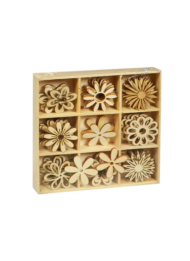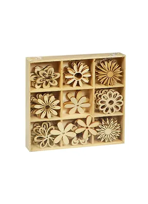 Набор деревянных элементов для творч. Цветы (DT-005) (45шт) (Рукоделие) (коробка)