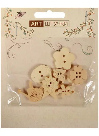 Набор деревянных неокрашенных пуговиц, 10 шт