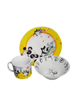 Набор красочной детской посуды из фарфора, предназначенный для самых маленьких деток.