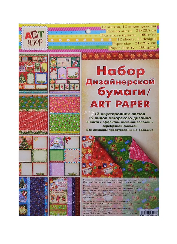 Набор дизайнерской двустор. бумаги С Новым годом (180357) (12л.) (12 видов) (21х29,7см) (160г/м2) (Арт Узор) (упаковка)