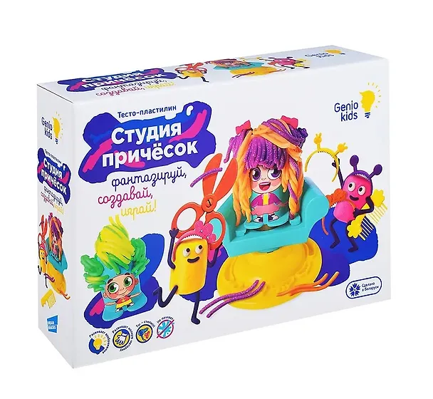 Розовые, зеленые, или, может быть, синие Какой цвет волос посетитель салона красоты выберет сегодня Помоги ему определиться вместе с набором для творческих экспериментов "Студия причесок" от Genio Kids! Создавай яркие креативные прически, дополняй аксессуарами, и меняй их одну за одной!