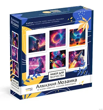 На упаковке изображены такие красивые картинки, а на деле оказалось изображение с очень сильно ухудшенным качеством. Даже не сразу понятно что на них изображено, ни до приклеивания "алмазиков", ни после. Будто абстракцию собираешь на космическую тематику.