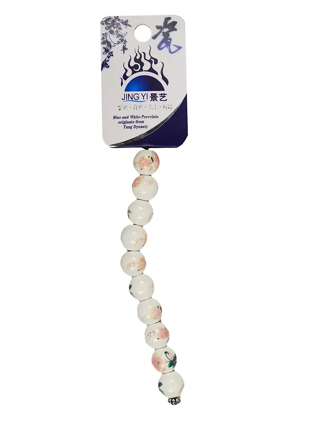 Набор для творчества Бусины керам. на силикон. нити 10шт 12мм, A34, мак розовый