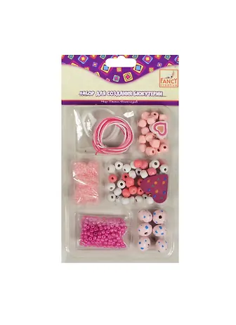 Набор для бижутерии, ACTION! Fancy, БИЖУ-5, бусины деревянные, 5 видов, 50гр, шнур 3штуки*0,8метра, 2 дизайна