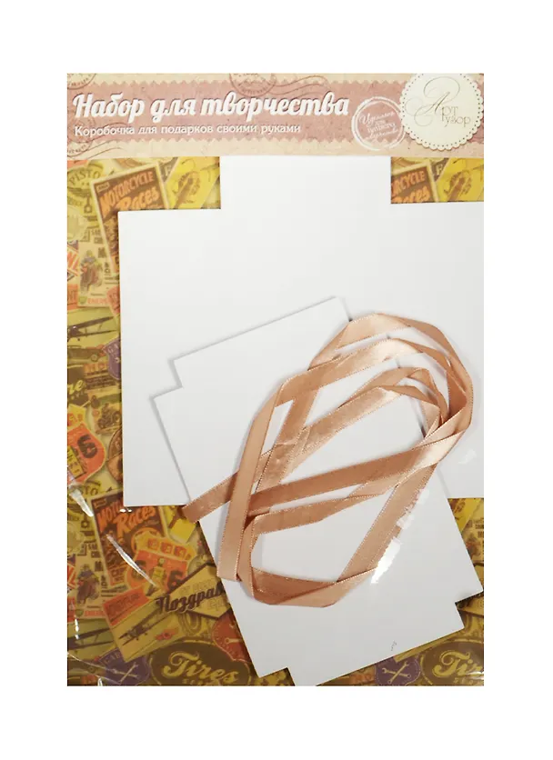 .В дополнение вам потребуются ножницы и клей. Подробная инструкция о том, как собрать и украсить коробку, представлена на упаковке.