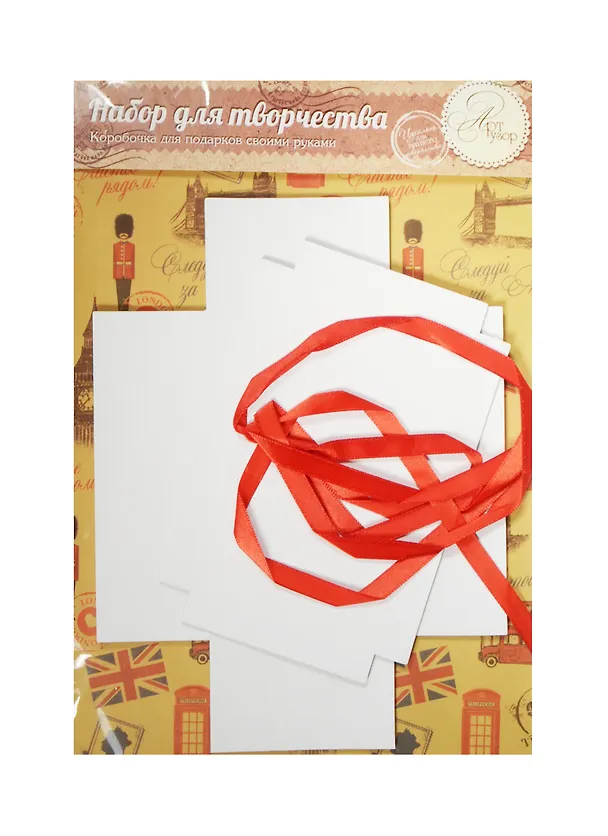 .В дополнение вам потребуются ножницы и клей. Подробная инструкция о том, как собрать и украсить коробку, представлена на упаковке.
