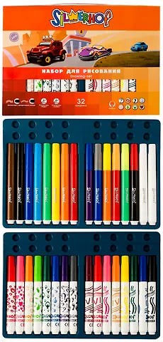 Набор для дет.творч. 32 предмета "HAPPY CARS" (фломастеры, штампы) к/к, Silwerhof
